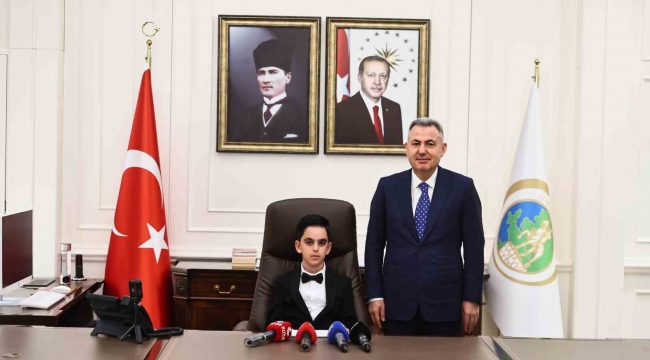 İzmir’de 23 Nisan Ulusal Egemenlik ve Çocuk Bayramı kutlamaları kapsamında İzmir Valisi Süleyman Elban, makam koltuğunu uluslararası olimpiyatlarda dereceye giren ilkokul 4’üncü sınıf öğrencisi Can Özcan’a devretti.