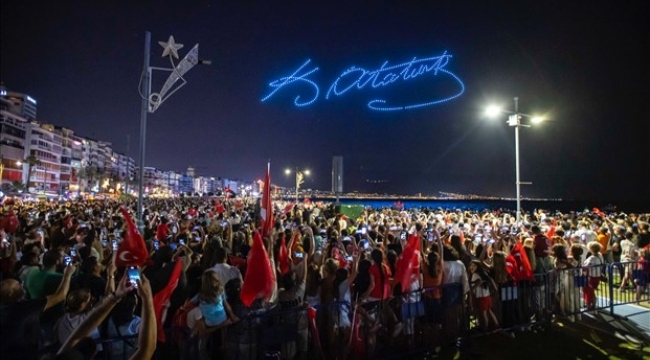 İzmir Büyükşehir Belediyesi, 30 Ağustos Zafer Bayramı kutlamaları kapsamında Gündoğdu Meydanı’nda dron gösterisi yaptı. İzmir Körfezi’nin eşsiz manzarası, 500 dronun görsel şöleni ile unutulmayacak anlara sahne oldu. İzmirli yurttaşların gösteriyi en iyi açıdan izleyebilmesi için Alsancak İskelesi’ne platform kuruldu. Çok sayıda İzmirli, ünlü oyuncu ve sunucu Yavuz Seçkin’in sunuculuğunda 30 Ağustos’u kutladı, hep bir ağızdan marşlar söyledi.