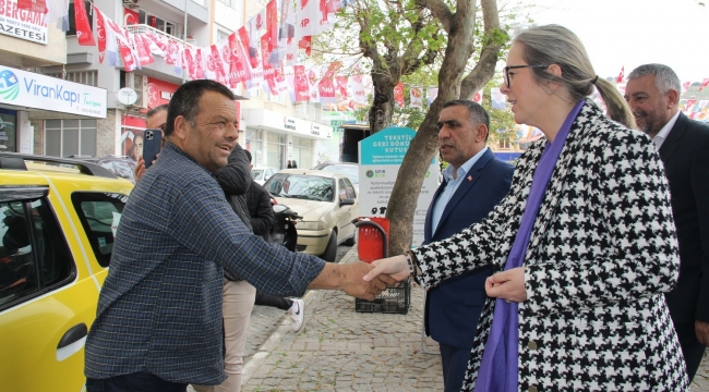 AK Parti İzmir Milletvekili ve İzmir 2. Bölge Milletvekili Adayı Ceyda Bölünmez Çankırı seçim maratonunda temaslarına Dikili ve Bergama’da çeşitli ziyaretlerle devam etti. Dikili’de Atatürk Caddesi üzerinde bulunan esnafla bir araya gelen Çankırı’ya vatandaşlar yoğun ilgi gösterdi. “Evlerde dualarla beklenen AK Parti var” diyen esnaf bölgede en büyük sıkıntının üç yıldır ilçe otogarının sorumlular tarafından göz ardı edildiğini söyledi. İlçe belediyelerinin görev ve sorumlulukları dâhilindeki bölgelere yetişemedikleri durumda Büyükşehir Belediyesinin el atması gerektiğini anlatan Milletvekili Çankırı, “Yerel seçimlerin ardından 4 yıl geçti, bu sürede belediye başkanı girmedik yer bırakmamalıydı. Biz, 1 yılda köprüler, havalimanları yapıyoruz. CHP zihniyeti, 3 yılda bir ilçe otogarını yapamadı. Bu nasıl bir hizmet anlayışı?” dedi.