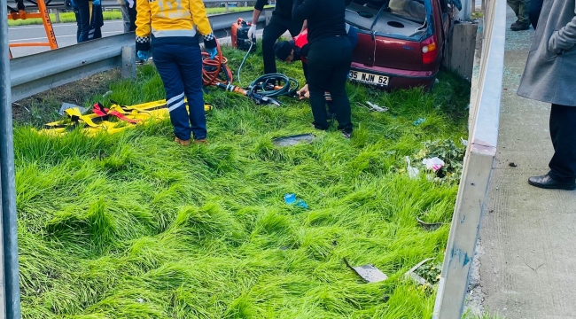 Ekipler, hurdaya dönen araçtaki sürücünün öldüğünü belirledi. Kazada araçta yolcu bulunan F.Y.(50) yaralı olarak hastaneye kaldırıldı.