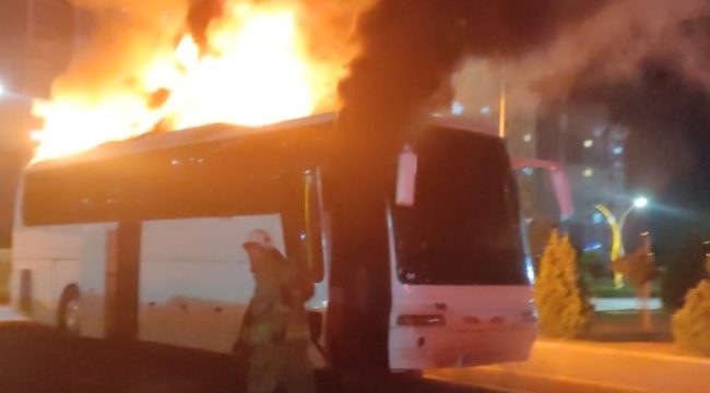 Aliağa 'da servis otobüsü alev alev yandı