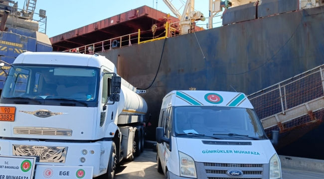 İzmir Aliağa Limanlar bölgesine  gelen bir kuru yük gemisine operasyonda, piyasa değeri 1 milyon 500 bin lira olan 40 ton kaçak akaryakıt ele geçirildi.