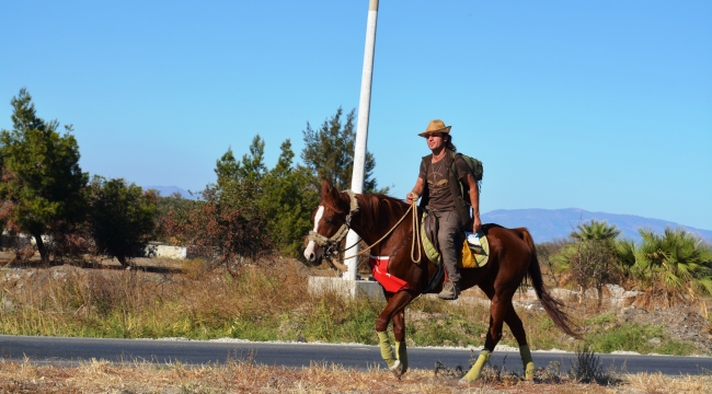 Gittiği bölgelerde geceyi açık havada atıyla birlikte geçiren Halit Can'ın mesleği Endüstriyel Dağcı. Rusya Ukrayna savaşıyla birlikte “Savaşa Hayır” demek ve dünya kamuoyunu bu savaşın yıkımına dikkat çekmek için yollara düştüğünü kaydeden modern seyyah Can, “11 Mayısta Karamürsel'den yola çıktım. Gittiğim yerlerde Türk insanının misafirperverliği beni çok etkiliyor. Kıyı şeridini takip ederek Karamürsel'den Çanakkale'ye, oradan Kazdağları üzerinden Edremit ve Ayvalık'a ulaştım. Dikininin ardından da Aliağa'ya geldim. Antalya'ya kadar yolculuğum devam edecek” dedi.