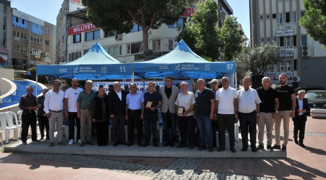 Aliağa  Esnaf ve Sanatkarlar Odası, Ahilik Haftası dolayısı ile lokma dağıttı, 30  ve 40 yılını  geride bırakan esnaflara plaketleri takdim edildi.