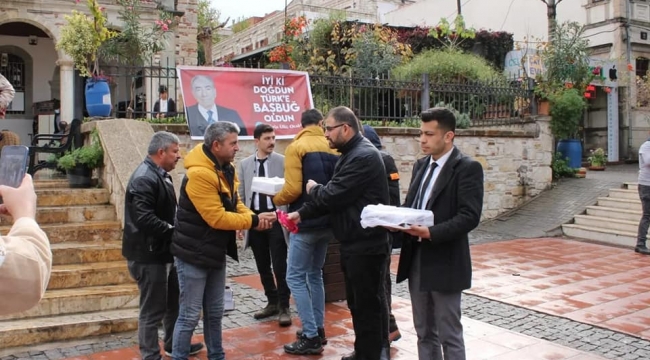 Ülkü ocakları tarafından Aliağa  Merkez camiinde    Cuma namazı  çıkısında Merhum  Başbuğ Alparslan Türkeş’i n ruhları hayrına Aliağa Merkez Cami önünde lokum hayrı ve gül kokusu ikramında bunulurken dua okundu