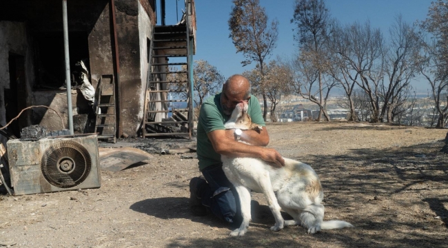 Kaptan'a kavuşunca büyük bir mutluluk yaşayan Fikri Altınkaya, “Neredesin sen? Hoş geldin oğlum. İyi misin?” diyerek köpeğe sarıldı. Altınkaya, “Yangının çıktığı gün ben onu yuvasından çıkardım. Aldım götürdüm. Ama geri kaçtı. Gece birisi görmüş, almış top sahasına bırakmış ama o eve gelmiş. Patileri yandı ama burayı terk etmedi. Sağ olsun İzmir Büyükşehir Belediyesi yetkilileri kedilerimizi, köpeklerimizi alıp tedavi etti. Aşılarını ve bakımlarını yaptı. Hepsine teşekkür ediyorum” diye konuştu.