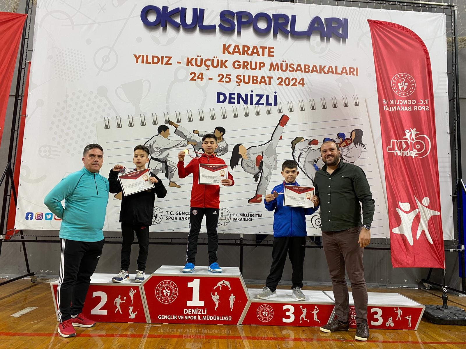 Denizli'de Gençlik ve Spor İl Müdürlüğü'nün ev sahipliğinde gerçekleşen Okul Sporları Karate Yıldızlar ve Küçükler Grup Şampiyonası'nda Aliağalı karateci Kaan Efe Şahin Gümüş Madalya Kazandı