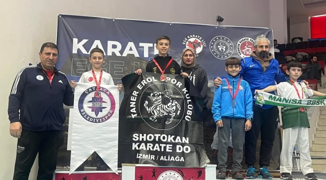 Türkiye Karate Federasyonu tarafından Uşak'ta düzenlenen ve 67 kulübün katıldığı Ege Karate Ligi’nin ikinci etap müsabakalarında Aliağa Taner Erol Spor Kulübü büyük bir başarıya imza attı. 875 sporcunun mücadele ettiği organizasyonda Aliağalı karateciler, 3 altın, 1 gümüş ve 4 bronz madalya kazanarak genel sıralamada 4. sırada yer aldı.