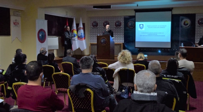 Seminerde İzmir İş Sağlığı ve Güvenliği Profesyonelleri Derneği Yönetim Kurulu Başkanı Oktay Ergeç, iş güvenliği uzmanlarının görev ve sorumlulukları, Ege İş Sağlığı ve Güvenliği Federasyonu Başkanı Mahmut Çamlı, iş güvenliği uzmanlarının çalışma hayatında karşılaştığı zorluklar, Avukat Fatih Uzun iş kazalarında işveren sorumluluğunun hukuksal değerlendirmesi ve İş Kazaları İş Güvenliği Bilirkişisi Erol Yiğit ise iş kazalarında işverenlerin sorumluluklarına bilirkişi yaklaşımı konularını detaylarıyla katılımcılarla paylaştılar.