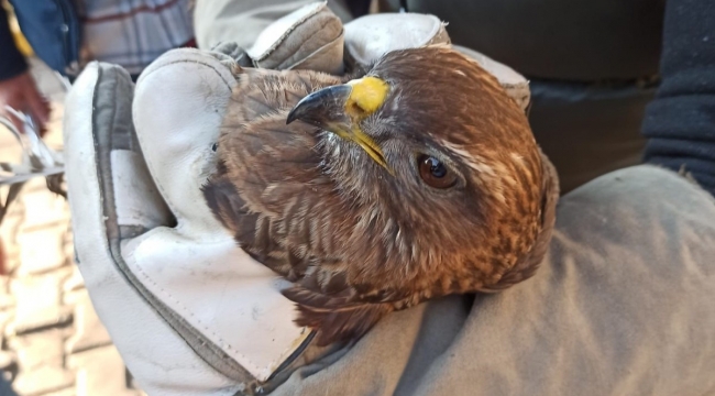 Araç kaputuna sıkışan şahin, belediye ekiplerince kurtarıldı