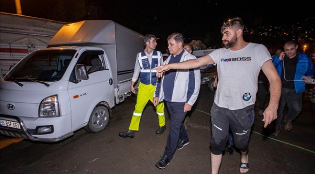 İzmir Büyükşehir Belediyesi’nin çeşitli birimlerine bağlı ekipler su baskını yaşanan bölgelerde pompalar, iş makineleri ve kanal araçlarıyla su tahliye çalışmalarına katıldı.