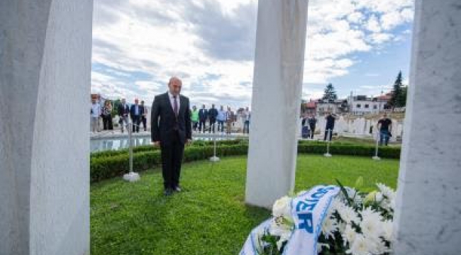 Srebrenitsa’da 8 bini aşkın insanın katledilişinin 27’nci yılı nedeniyle Bosna-Hersek’e giden İzmir Büyükşehir Belediye Başkanı Tunç Soyer ve İzmir heyeti ziyaretin ilk gününde başkent Saraybosna’daydı. “Bilge Kral” olarak anılan Aliya İzzetbegoviç’in kabrini ziyaret eden Başkan Soyer, savaşın izlerine dikkat çekerek, “İzmir'in vicdanını temsilen buradayız” dedi.