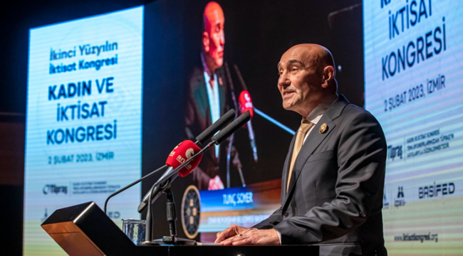 İzmir Büyükşehir Belediyesi tarafından düzenlenen Kadın ve İktisat Kongresi’nde konuşan Başkan Tunç Soyer, “Geleceğin inşasına yine birlikte, omuz omuza ve olması gerektiği gibi eşit olarak başlıyoruz. Yüz yıl önce Türkiye Cumhuriyeti’nin temelleri, özünde kadın duruşu olan bu buluşmayla mayalandı. Güçlendi. Bizler de, tam yüz yıl sonra, yine İzmir’de aynı ruh ve kararlılıkla toplandık” dedi.