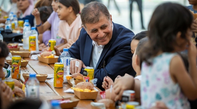İzmir Büyükşehir Belediyesi, Kültürpark’ta yapılan 94. İzmir Enternasyonal Fuarı (İEF) kapsamında, kentin farklı noktalarında bulunan Dayanışma Noktaları’ndan hizmet alan çocuklar ile ailelerini bir kez daha ağırladı. İzmir Büyükşehir Belediyesi Sosyal Hizmetler Dairesi Başkanlığı Bayraklı Nafız Gürman ile Alparslan mahallelerinden 46 çocuk, 17 yetişkini yemek içme alanında konuk etti. İzmir Büyükşehir Belediye Başkanı Dr. Cemil Tugay da alanı ziyaret ederek çocuklar ve ailelerle yakından ilgilendi.