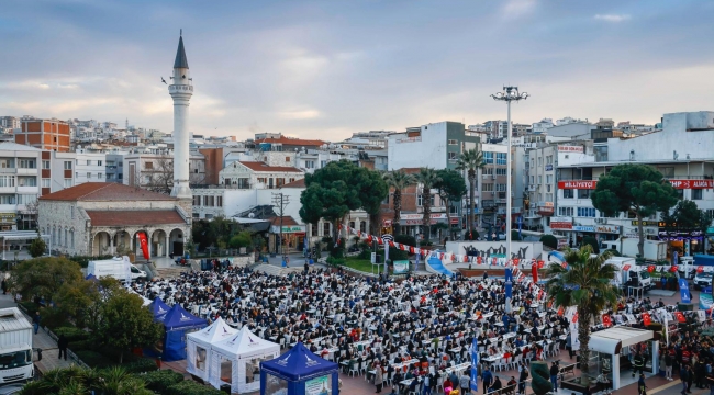 İzmir Büyükşehir Belediyesi tarafından kentin bir çok noktasında kurulan iftar sofraları, İzmir'deki dayanışmayı büyütüyor. Aliağa'da Belediye ve Demokrasi Meydanı'nda kurulan iftar sofrasına konuk olan İzmir Büyükşehir Belediye Başkanı Dr. Cemil Tugay, yurttaşlarla birlikte iftar yaptı. Başkan Cemil Tugay'a CHP Parti Meclisi (PM) Üyesi Yalçın Görgöz,Bergama Belediye Başkanı Tanju Çelik,CHP Aliağa İlçe Başkanı Ali Serçe, CHP Aliağa Belediye Meclis üyeleri ,Mahalle muhtarları, İzmir Büyükşehir Belediyesi Genel Sekreter Yardımcıları Prof. Dr. Pınar Okyay ve Çağatay Güç de eşlik etti. Birlik ve beraberlik mesajlarının verildiği programda, çocuklara pamuk şeker dağıtıldı.