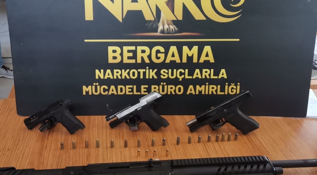 İzmir’in Bergama ilçesinde polis ekipleri tarafından yapılan aramalarda 4 ruhsatsız silah ve 21 adet değişik çaplarda mermi ele geçirildi.