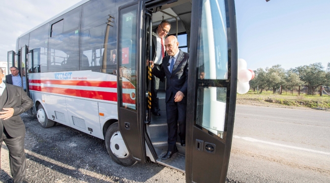 Konuşmaların ardından Başkan Soyer İZTAŞIT Bergama otobüsüne binerek ilk seyahate eşlik etti.