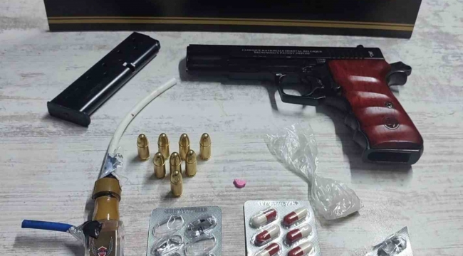 Araçta yapılan aramada, farklı tür ve miktarlarda uyuşturucu maddeler ele geçirildi. Şüphelinin evinde yapılan aramalarda ise yine bir miktar uyuşturucu madde ve ruhsatsız tabanca bulundu.