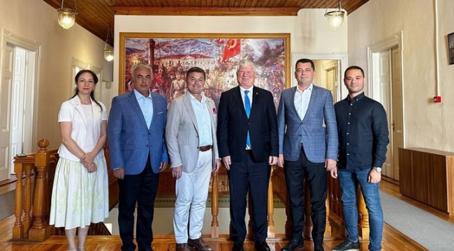 Bergama Ticaret Odası Başkanı Lütfi Kolat, Meclis Başkanı Tahir Erdoğan, Yönetim Kurulu Başkan Yardımcısı Göksel Özüak, Yönetim Kurulu Üyesi Emre Erdoğan ve Genel Sekreter Gülay Koç, İzmir Büyükşehir Belediye Başkan Vekili Mustafa Özuslu'yu ziyaret etti.