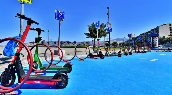 İzmir Büyükşehir Belediyesi çevreci ve kolay ulaşım aracı elektrikli skuterler (e-skuter) için hız düzenlemesi yaptı. Ulaşım Koordinasyon Merkezi (UKOME) toplantısında oy birliğiyle alınan karar doğrultusunda İzmir Büyükşehir Belediyesi kent trafiğinin, yayaların ve skuter sürücülerinin güvenliği için e-skuterlerin saatte 25 kilometre olan azami hızını, oy birliğiyle saatte 20 kilometre hıza indirdi. Kararın alınmasının ardından İzmir Büyükşehir Belediyesi Ulaşım Dairesi Başkanlığı, kent genelinde hizmet veren 9 kuruma gönderdiği yazıyla e-skuterlerin hızlarının merkezi sistemle düşürülmesini sağladı.