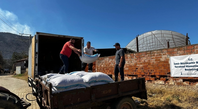 İzmir Büyükşehir Belediyesi Tarımsal Hizmetler Dairesi Başkanlığı, yangından etkilenen kırsal alanlarda tarımsal üretim zararını tespit etmek amacıyla yangının çıktığı ilk andan itibaren tüm ekipleri ile sahada yer aldı. Gerçekleştirilen ön hasar tespitleri sonunda daire başkanlığı tarafından Başkan Tugay'ın ziyaretinin hemen ardından yemleri ve meraları yanan, büyükbaş ve küçükbaş hayvan yetiştiriciliği yapan üreticilere yem desteği sağlandı. Geçtiğimiz hafta Foça Ilıpınar Mahallesi'ne 2,5 ton kesif yem dağıtan Büyükşehir, Ödemiş Karadoğan Mahallesi'ne ise 5 ton kesif yem ve 8 ton kaba yem dağıtımı gerçekleştirdi. İlk aşamada toplamda 7,5 ton kesif yem, 8 ton kaba yem üreticilere teslim edildi. Üreticilere destekler, soğutma çalışmaları tamamlandıktan sonra artarak devam edecek.