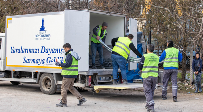 İzmir Büyükşehir Belediyesi, bölgeye gelen yardımların doğru bir şekilde ulaşması için de kurumlarla işbirliği içinde desteklerini ulaştırıyor. Kamu Emekçileri Sendikaları Konfederasyonu’na (KESK) bağlı Eğitim-Sen gönüllülerinin bölgede kuracakları çocuk oyun ve rehabilitasyon alanı için ekipler alana giderek kurulum yaptı.