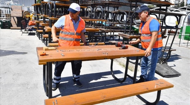 Kentin sosyal donatı alanlarında yenileme çalışmalarını hızla sürdüren İzmir Büyükşehir Belediyesi, parklarda ihtiyaç duyulan malzemeleri kendi bünyesinde üreterek ve dönüştürerek kamu kaynaklarının korunmasını sağlıyor. İzmir Büyükşehir Belediyesi, Park ve Bahçeler Dairesi Başkanlığı Ağaçlandırma Şube Müdürlüğü bünyesindeki Fırat Fidanlığı Atölyesi yeni ekipman, araç-gereç ve kalifiye personelle güçlendirildi. Atölyede, kent mobilyalarından çöp kutularına, uyarı levhalarından kedi evlerine kadar pek çok ürün İzmirlinin hizmetine sunuluyor.