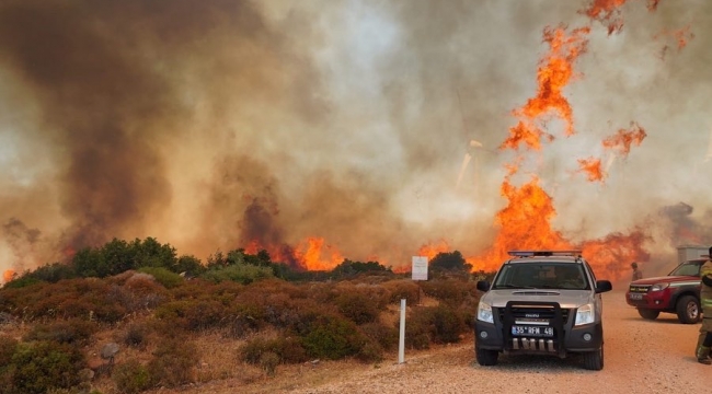 Çeşme'de makilik ve otluk alanda yangın