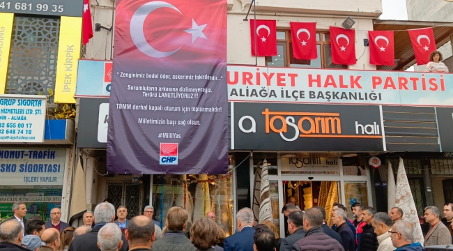 CHP, 81 il ve ilçe örgütüyle eş zamanlı olarak 22-23 Aralık 2023 tarihlerinde terör örgütü PKK’nın saldırıları sonucu şehit olan 12 askerle ilgili basın açıklaması düzenledi. Bu kapsamda CHP Aliağa İlçe Başkanlığı binası önünde de basın açıklaması gerçekleştirildi. Şehit olan 12 asker için saygı duruşunda bulunulup İstiklal Marşı’nın okunmasının ardından konuyla ilgili açıklama metnini CHP Aliağa İlçe Başkan Yardımcısı Ziya Yıldız okudu. Yıldız, “22-23 Aralık 2023 gecelerinde arka arkaya gelen kara haberlerle sarsıldık. Pençe Kilit Harekât bölgesinde 12 vatan evladımızı bölücü terör örgütünün hain saldırılarında şehit verdik. Yüreğimiz yandı, bağrımıza taş oturdu. Acımız büyük. Bugün, gencecik vatan evlatlarını toprağa verdiğimiz hain terör saldırılarına, bu insanlık dışı saldırıların yol açtığı onarılmaz acılara artık yeter demek için buradayız.  Piyade Teğmen Ramazan Günay, Piyade Uzman Çavuş Mehmet Serinkan, Piyade Uzman Onbaşı İsmail Yazıcı, Piyade Sözleşmeli Er Semih Yılmaz, Piyade Uzman Çavuş Abdulkadir İyem, Piyade Uzman Çavuş Ahmet Arslan, Piyade Sözleşmeli Er Emre Taşkın, Piyade Sözleşmeli Er Yasin Karaca, Piyade Sözleşmeli Er Çağatay Erenoğlu, Piyade Sözleşmeli Er Cebrail Dündar, Piyade Sözleşmeli Er Enis Budak, Piyade Sözleşmeli Er Kemal Aslan. Şehitlerimizin her birinin ayrı bir hikayesi, arkada bıraktıkları aileleri, evlatları, eşleri var. Şehitlerimize bir kez daha Allah’tan rahmet, acılı ailelerine başsağlığı ve sabır, yaralanan askerlerimize şifa diliyoruz. Terörü, bölücü terör örgütü PKK’yı ve insanlık dışı yöntemlerini lanetliyoruz. Sadece kınamıyoruz; lanetliyoruz! Toprağa verdiğimiz kahraman evlatlarımızın, bütün şehitlerimizin aziz hatıralarını sonsuza dek yaşatacağımıza söz veriyoruz.” Dedi.
