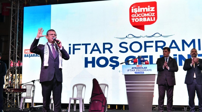 CHP Genel Başkanı Özgür Özel, CHP'nin İzmir Büyükşehir Belediye Başkan Adayı Dr. Cemil Tugay ile sabah saatlerinde başlattığı İzmir turunu, Torbalı'da yurttaşların iftar sofrasına konuk olarak tamamladı. Özel ve Tugay, Ayrancılar Pazar yerinde binlerce kişinin katılımı ile oruç açtı. İftarın ardından konuşma yapan Özgür Özel, Ayrancılar’a hizmet sözü verildiğini ancak bunların tutulmadığını söyledi. Ayrancı'ların geri bırakıldığını belirten Özel, “Övünç Demir başkan kararlı, Torbalı’ya pozitif ayrımcılık yapacak. Cemil Tugay da aynısını yapacak, hep birlikte çalışıp Ayrancılar’da ne eksikse yerine getirip size sahip çıkacağız” dedi.