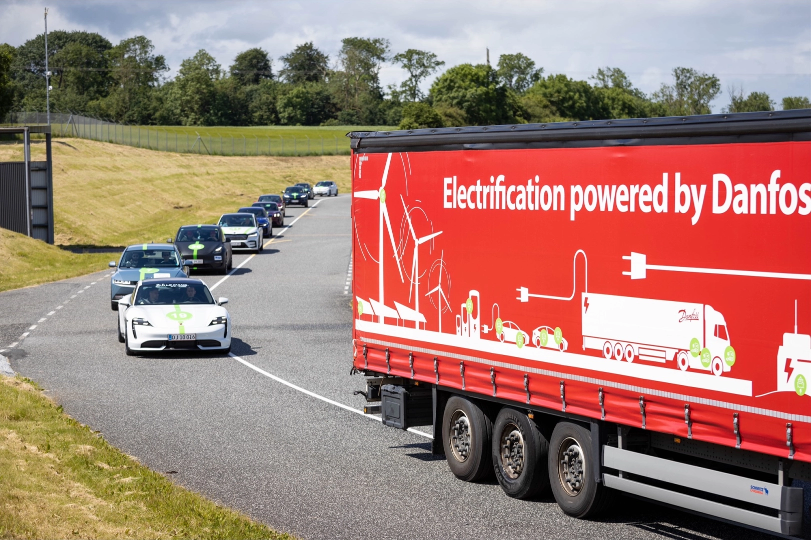 Danfoss'un 20 ton ağırlığında ve 17 metre uzunluğundaki ağır hizmet tipi elektrikli kamyonu, 12-14 Haziran tarihleri arasında "Dünyanın en büyük elektrikli yolculuğu"nda 48 elektrikli binek araca eşlik etti. Elektrikli kamyonlar, Danfoss’un üretim tesislerinde ve lojistik operasyonlarında kargo taşımacılığının daimi bir parçası olarak dikkat çekiyor.