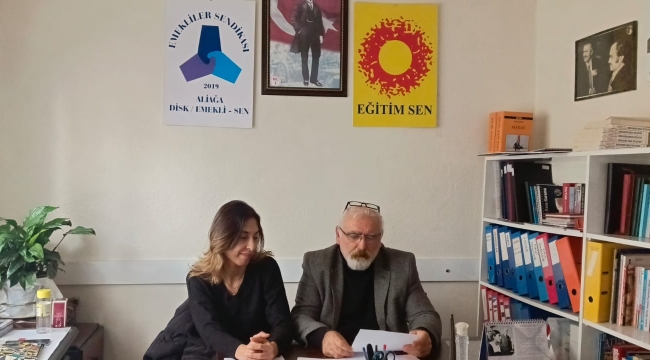 Sendika Binasında  düzenlenen basın toplantısında Eğitim Sen Aliağa Şube Başkanı Yalçın Aydın   6 Şubat 2023'te Türkiye'yi sarsan depremler, on binlerce kişiye zarar verdi ve ulusal bir dayanışma dalgasını tetiklediğini belirti. Aliağa Eğitimsen Şube Başkanı Yalçın Aydın,” Depremin ilk gününden itibaren dört bir koldan dayanışmanın parçası olarak imkanlarımızı seferber ederek, depremzedelerin yardımlarına koşarak, ellerinden  tutup güç vermeye çalışıyoruz, çalışacağız da. Bu zorlukların üstünden gücümüzün yettiğince elbirliğiyle gelmek için dayanışmayı büyütüp, mücadele etmeye devam edeceğiz.” dedi.