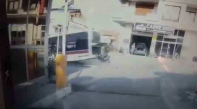 Öte yandan meydana gelen kaza bir araç kamerası tarafından görüntülendi. Görüntülerde sürüklenen otobüsün park halindeki bir araca çarptığı, arkasında eliyle otobüsü tutmak isterken sürüklenen bir kişinin bulunduğu görüldü.