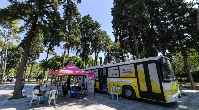 İzmir’de yaşayan engelli yurttaşlar, İzmir Büyükşehir Belediyesi Destekli İstihdam Ofisi’nin iş koçları eşliğinde Buca Hasanağa Bahçesi’ndeki Meslek Fabrikası Mobil İstihdam Aracı’na gelerek iş başvurusunda bulundu. Hem iş koçları hem de Meslek Fabrikası İstihdamı Geliştirme ve Destekleme Birimi görevlileriyle ikili görüşmeler yapan adaylar, çeşitli sektörlerde istihdam edilmeyi bekliyor.