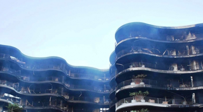 İzmir'in Narlıdere ilçesinde bulunan 8 katlı, 40 daireli sitede çıkan yangın, 7 saatlik çalışmaların sonrasında kontrol altına alınırken, yangının bıraktığı hasar gün ağarınca havadan görüntülendi.