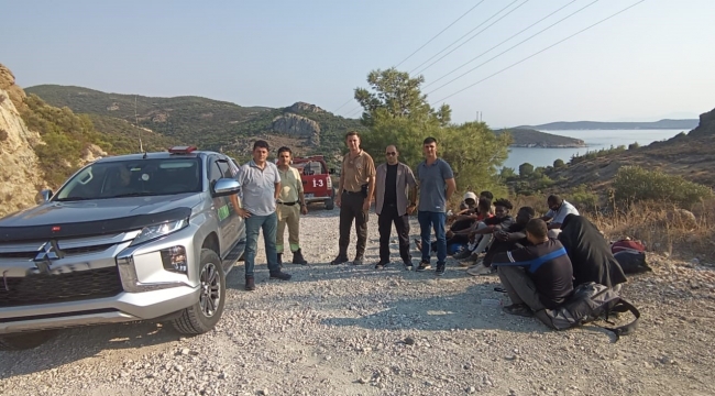 Foça'da Ormanlık Alanda 62 düzensiz göçmen yakalandı