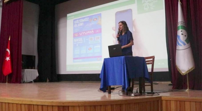 Foça Emniyet Müdürlüğü tarafından Foça Reha Midilli Kültür Merkezi’nde düzenlenen seminerin sunumunu Aliağa Emniyet Müdürlüğü Narkotik Büro Amirliğinde görevli polis memuru Didem Aydemir yaptı. Büyük çoğunluğu kadın olan izleyiciler arasında Foça Belediyesi personeli ve Foça Kent Konseyi üyelerinin yanısıra Foça Emniyet Müdürü Özgür Arslan, CHP Foça İlçe Başkanı Ayla Yılmaz, İlçe Kadın Kolları Başkanı Suna Saraçoğlu’da yer aldı.