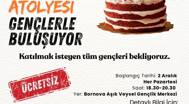 Pasta Yapım Atölyesi; 2 Aralık’ta başlayacak ve 12 hafta sürecek. Bornova'daki Aşık Veysel Gençlik Merkezi'nde her pazartesi 18.30-20.30 saatleri arasında yapılacak her atölye için kontenjan 15 kişiyle sınırlı olacak.