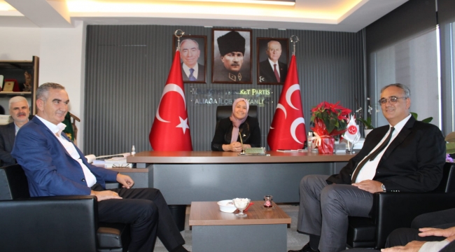 Aliağa ilçe emniyet müdürü Mustafa Ömür Avcı, MHP Aliağa İlçe Başkanı Nuray Aydemir’i ilçe teşkilat binasında ziyaret etti.