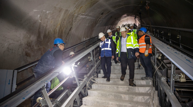 Narlıdere Metrosu’nda çalışmaların hızlı bir şekilde devam ettiğini söyleyen İzmir Büyükşehir Belediye Başkanı Tunç Soyer, “Ne depremler ne pandemi hiçbir şey durduramadı, yolumuzdan alıkoyamadı bizi. 1,5 milyar liraya yakın bir bütçeyle bu projeyi tamamlamış olacağız. Çok hızlı yürüyoruz. Deneme seferleri için hedef tarihimiz 15 Nisan. Vadettiğimiz gibi bu yıl içinde, Cumhuriyetin 100. yılında metro hattını tamamlayarak vatandaşlarımıza hediye edeceğiz. Şu anda yürüyen merdivenlerin montajı yapılıyor. İstasyonlarda son rötuşlar için arkadaşlarımız çalışıyor. Çok hummalı bir çalışma var. 700’ün üzerinde çalışan bu tarihe yetişmeye gayret ediyor. Bütün arkadaşlarıma minnettarım” dedi.