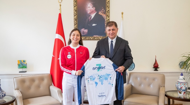 İlklere imza atan İzmirli yüzücü Başkan Tugay'la buluştu