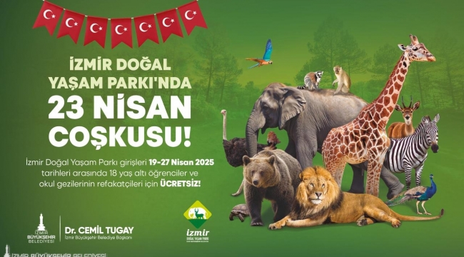 İzmir Büyükşehir Belediyesi 23 Nisan Ulusal Egemenlik ve Çocuk Bayramı kutlamaları kapsamında 27 Nisan’a kadar 18 yaş altı öğrenciler ve okul gezilerinin refakatçileri için Doğal Yaşam Parkı’na girişleri ücretsiz yaptı.