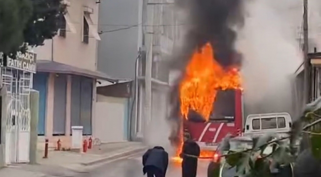 İzmir'de belediye otobüsü alevlere teslim oldu