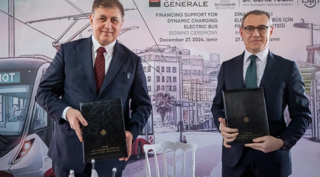 İzmir Büyükşehir Belediyesi’nin toplu ulaşımda yeni bir dönemi başlatacak olan Dinamik Şarjlı Elektrikli Otobüs Projesi’nin ilk adımı atıldı. İzmir Büyükşehir Belediye Başkanı Dr. Cemil Tugay, yeni araçların alımı için Fransız Societe Generale Bank ile 80 milyon Euro’luk kredi sözleşmesinin ön protokolünü imzaladı.