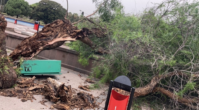 İzmir'de kuvvetli fırtına nedeniyle Büyükşehir Belediyesi ekipleri yoğun mesai harcadı. Fırtına, kent genelinde 33 ağacın zarar görmesine, Menderes, Tire, Karaburun ve Foça’da çatıların uçmasına neden oldu. İzmir Büyükşehir Belediyesi ekipleri yaşanan olumsuzluklara anında müdahale etti.