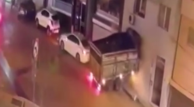 Olay, dün akşam saat 20.15 sıralarında Bayraklı Çiçek Mahallesi 1615/4 Sokak’ta meydana geldi. İ.Y. idaresindeki 35 EME 06 plakalı kamyon, freninin boşalması sonucu kontrolden çıkarak sokağın sonundaki apartmanın giriş katındaki daireye çarptı. Çarpmanın etkisiyle evin oturma odasına ait duvar büyük ölçüde yıkıldı. Sürücü kazayı yara almadan atlatırken, olay anında evde kimsenin olmaması ise büyük bir faciayı önledi. Kaza anı çevredeki güvenlik kameralarına da saniye saniye yansıdı.