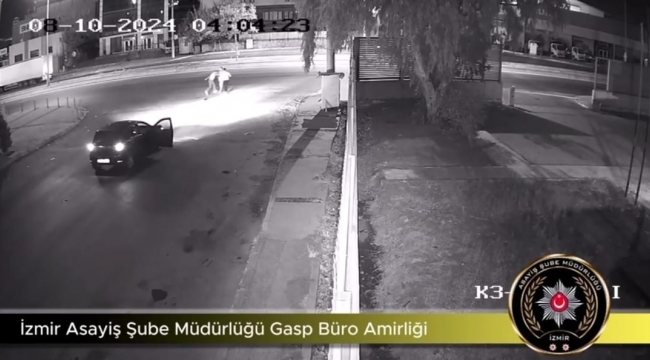 Öte yandan, şüphelilerin gece vakti genç bir kızın önünü keserek çantasını zorla alıp araca binerek uzaklaştıkları anlar ise güvenlik kamerasına yansıdı.