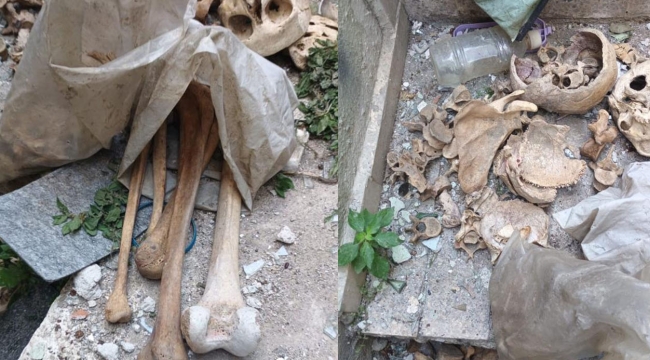 İzmir'in Bornova ilçesinde kentsel dönüşüm yıkıma girecek olan bir binanın bodrum katında, 3 ayrı poşet içerisinde üç kişiye ait olduğu düşünülen kafatasları ve kemik parçaları çıktı.