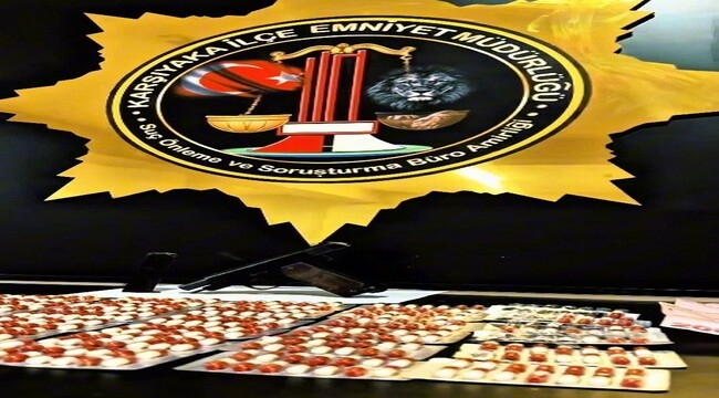 İl Emniyet Müdürlüğü Narkotik Suçlarla Mücadele Şube ile Karşıyaka İlçe Emniyet Müdürlüğü ekipleri tarafından 22-27 Mart tarihleri arasında uyuşturucuyla mücadele kapsamında çalışmalar yapıldı. Polis ekiplerince Örnekköy ve Cumhuriyet Mahallelerinde uyuşturucu madde ticareti yaptığı tespit edilen şahıslara ait adreslerde baskın düzenlenirken yapılan aramalarda 9 bin 811 adet gerica sentetik uyuşturucu hap ve 1 adet ruhsatsız tabanca ele geçirildi. Operasyonlar kapsamında gözaltına alınan 5 şüpheli emniyetteki işlemlerinin ardından adliyeye sevk edildi. Şüphelilerden H.V.(29), S.D.(24) ve A.A.(24) çıkarıldıkları mahkemece adli kontrol şartıyla serbest bırakılırken E.B.(29) ve D.A.(34) tutuklanarak cezaevine gönderildi.