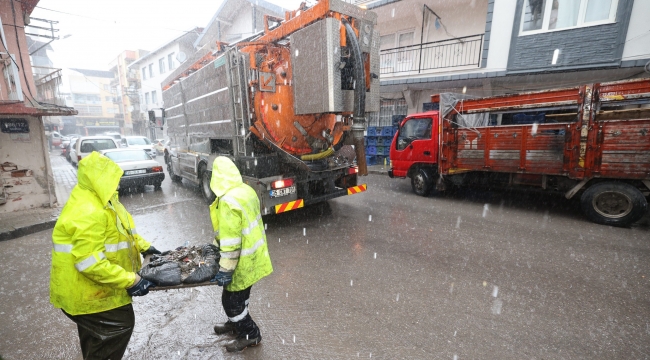 Yağış öncesi yapılan hazırlık kapsamında kent genelinde yağmur suyu ızgaraları, mazgallar, menfezler ve su geçiş hatlarında geniş çaplı temizlik çalışması yürütüldü.